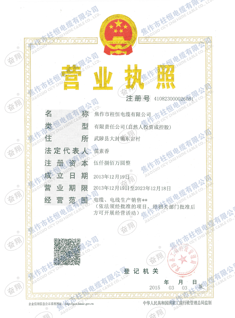 河南焦作市柱恒电缆有限公司创建于2013年,是以电线电缆、电缆附件、电力电器加工销售为一体的大型股份制企业。
